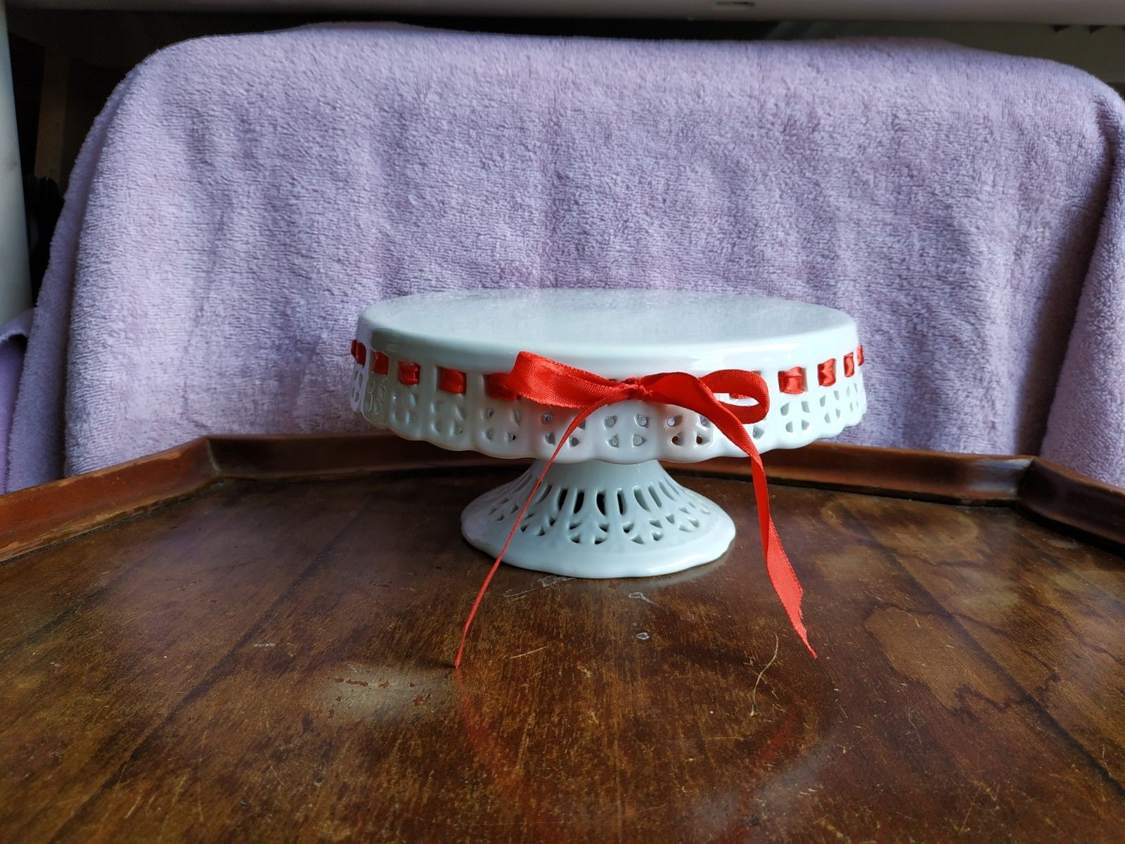 Title (ebay affiliate link): Vintage Lace Edge Milk Glass Pedestal 13" Cake Plate Stand Turns Rotates Spins
