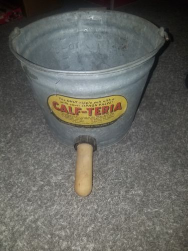Title (ebay affiliate link): Vintage Galvanized Metal Calf Watering Feeder / Bucket/ Calf-teria/ Farm Decor