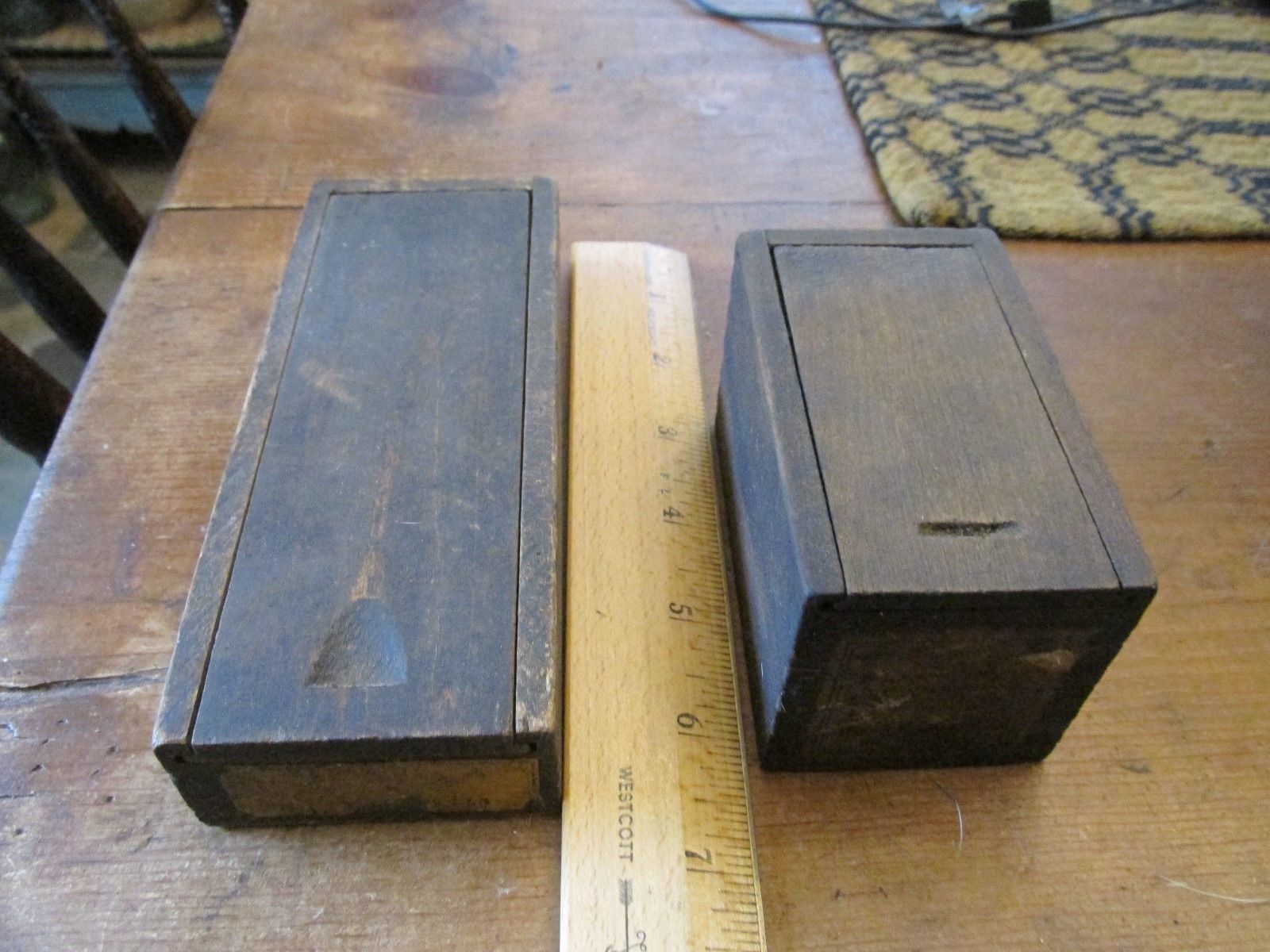 SMALL ANTIQE PRIMITIVE SLID LID WOODEN BOXES