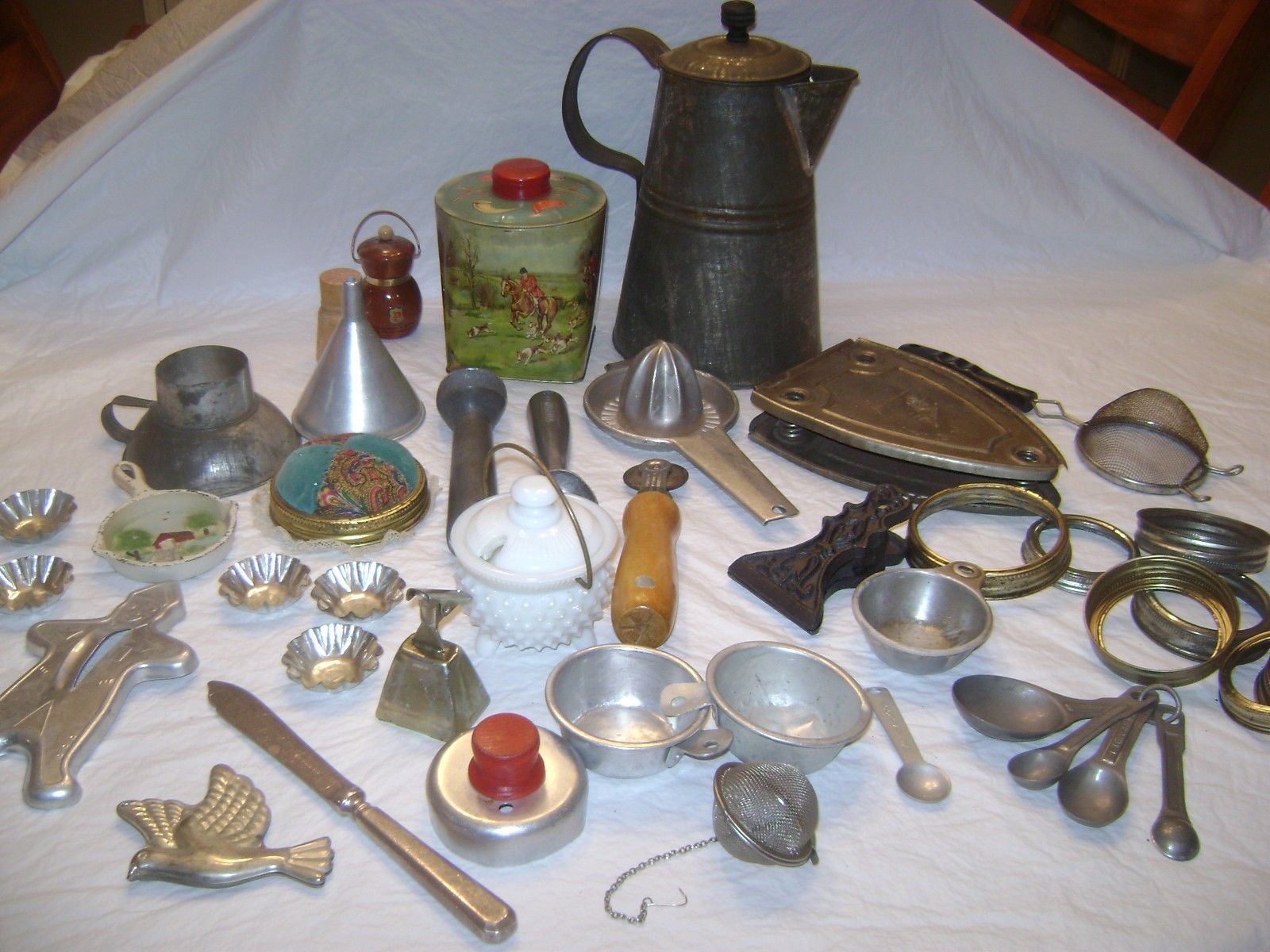 Primitive Rustic Vintage Kitchen Farmhouse Utensils Lot-Coffee Pot,Tin Ornament