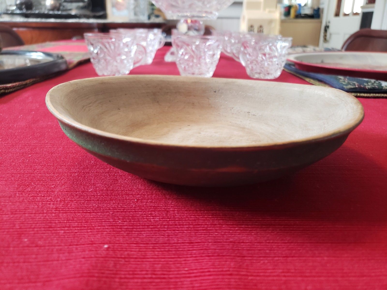 Title (ebay affiliate link): ANTIQUE WOODEN BOWL SLIGHTLY OVAL 7.25" SOUP CARVED OLD FADED GREEN PAINT