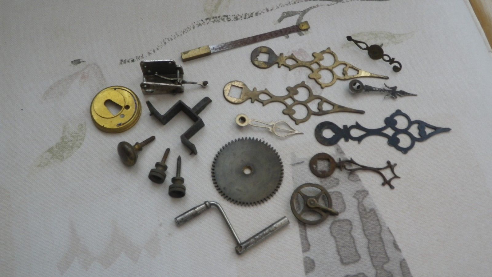 ANTIQUE LONGCASE & CLOCK PARTS HANDS WEIGHT WHEEL CRANKED KEY GEAR SCREWS ETC