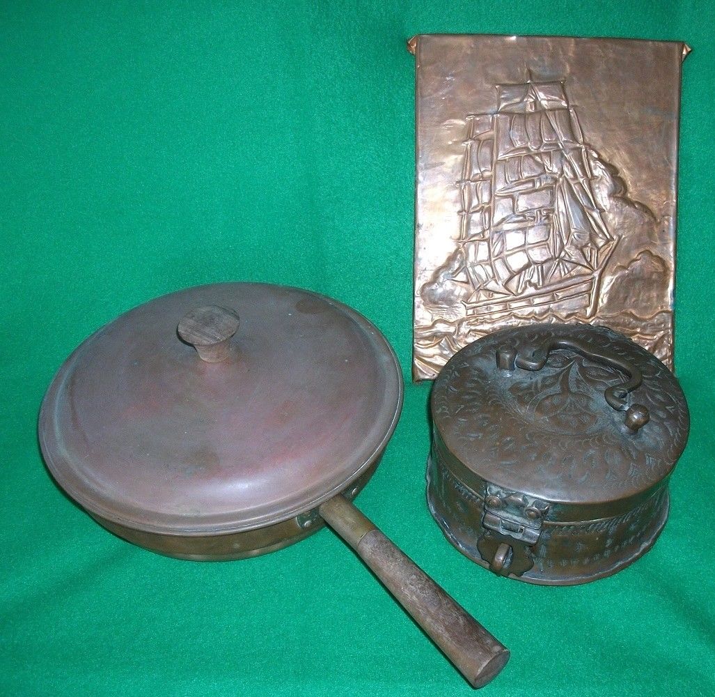 Copper Items-Saucepan, Wall Plaque, Candle Set