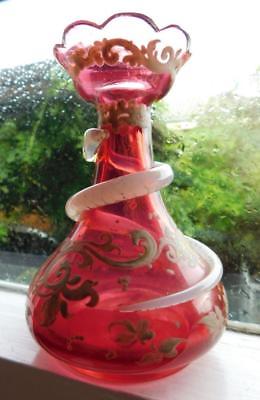 Gorgeous Gilt Cranberry Glass Vase with Entwined Opalescent Serpent c1890