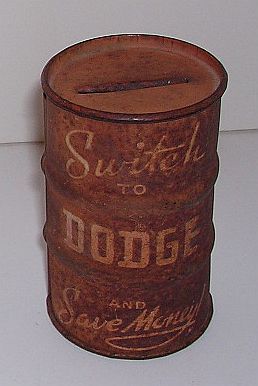 Vintage Tin Oil Barrel Bank Advertising Dodge