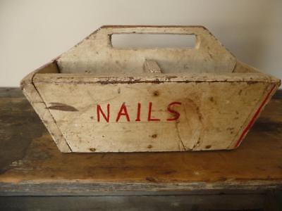OLD ANTIQUE PRIMITIVE WOOD NAILS TOTE SOLID AAFA YELLOW