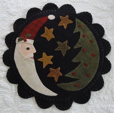 Title (ebay affiliate link): pRiMiTiVe Santa Moon Penny Rug~Candle Mat~Wool Applique~Christmas Sample SALE~