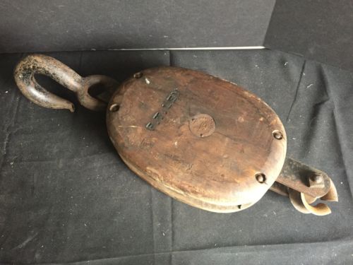 Title (ebay affiliate link): Antique Large Pulley Western Block Co. Lockport NY F.T. Ley & Co. Springfield MA