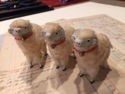 Title (ebay affiliate link): Putz Style Sheep Wool Sheep Match Stick Legs Circa 1986