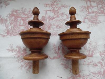 DIVINE PAIR ANTIQUE FRENCH WOODEN FINIALS- NEWELL POSTS / CURTAIN or FURNITURE