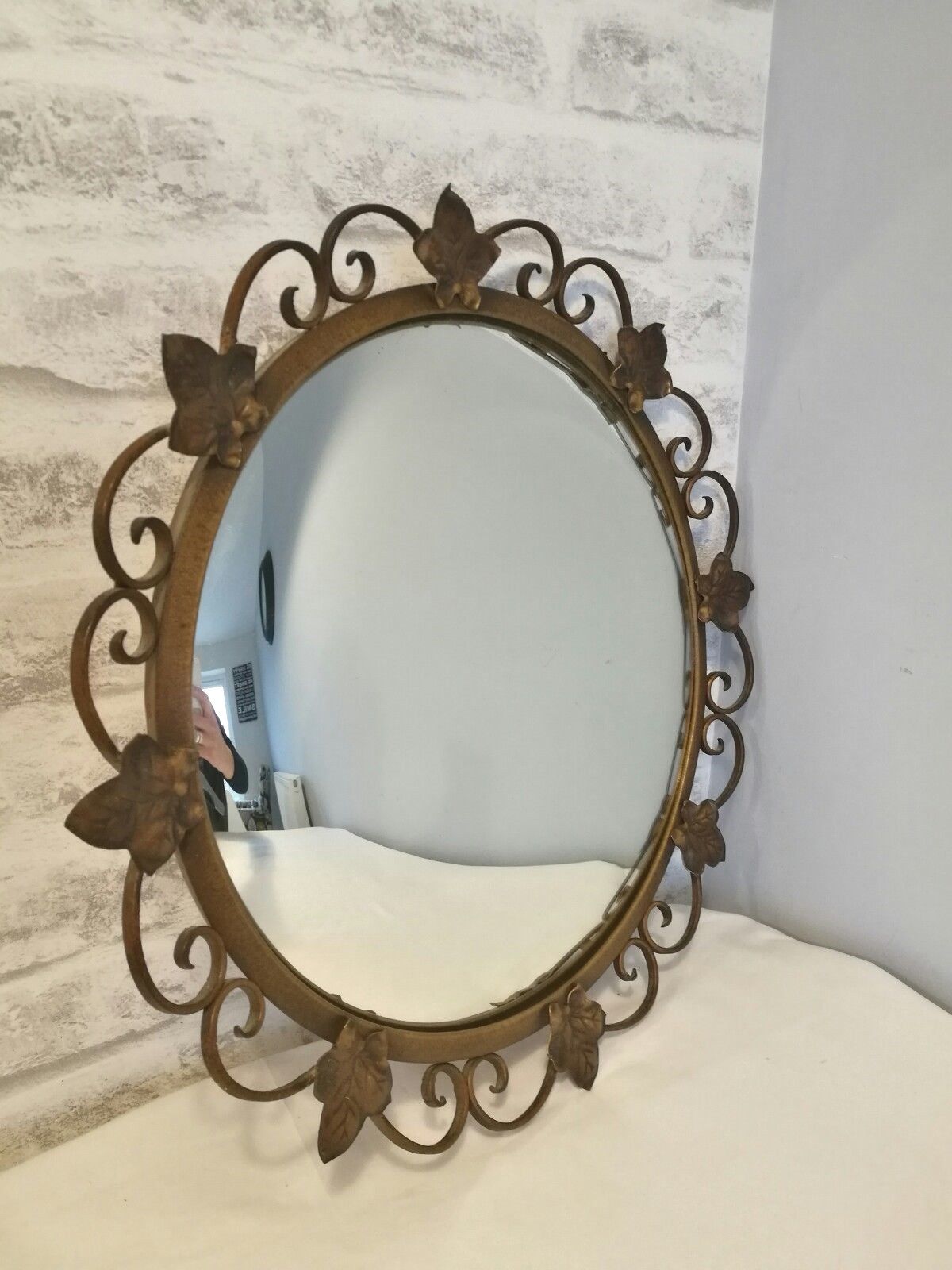 Title (ebay affiliate link): 1940''s/1950''s vintage convex round mirror with filigree & leaf detail