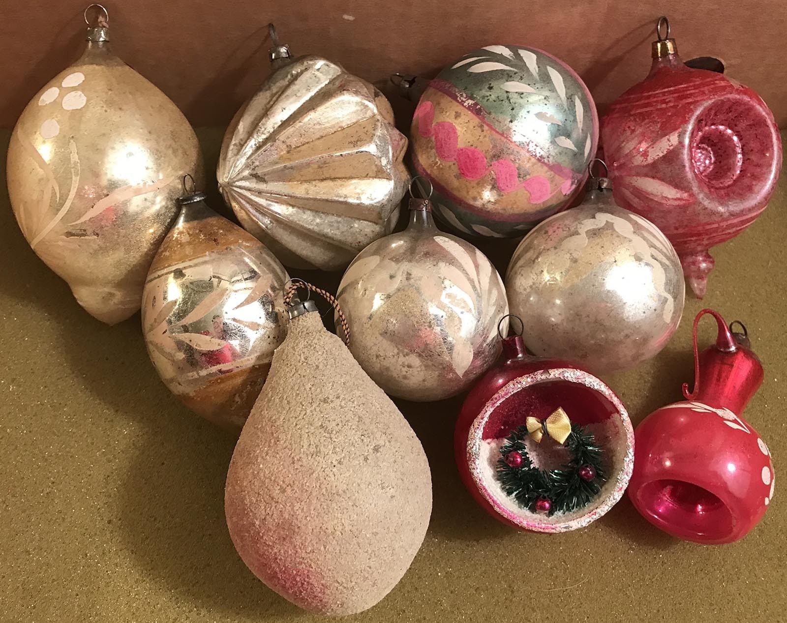 10 Vintage Antique Christmas Glass Tree Ornaments, Hand-Painted Old Decorations