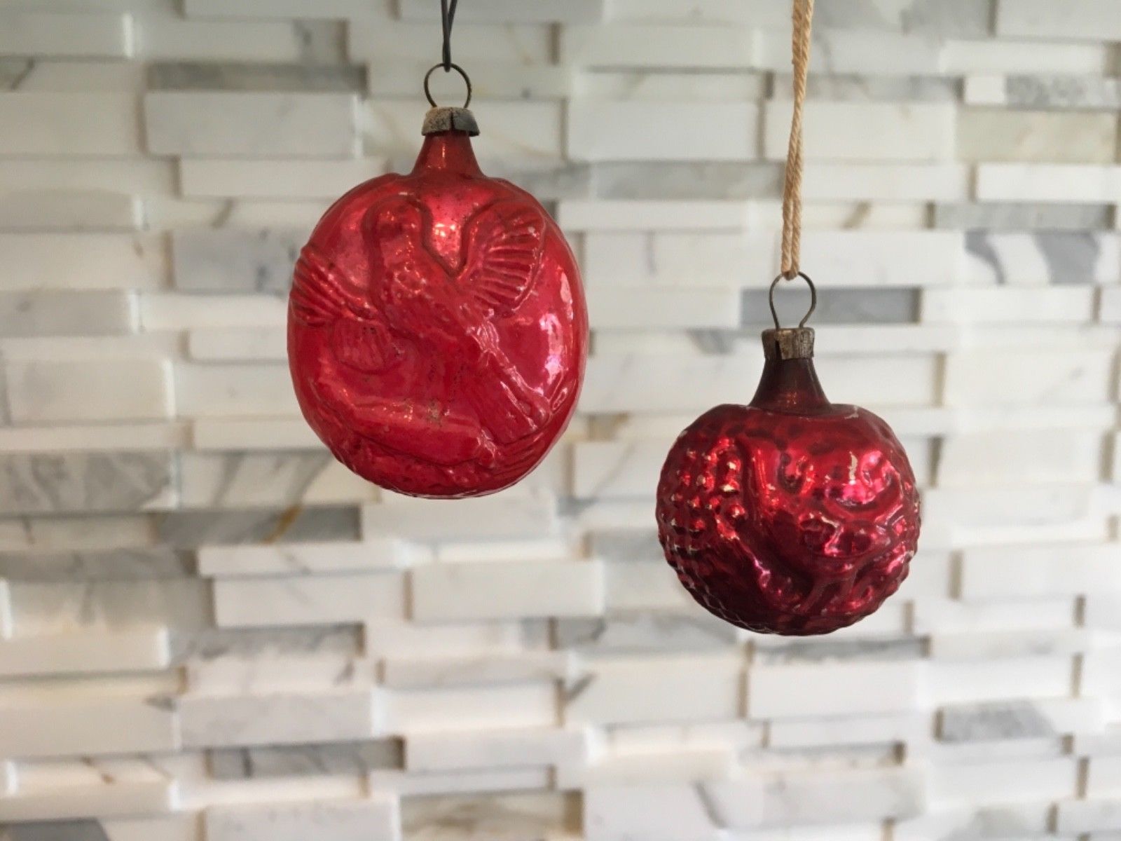 Title (ebay affiliate link): Antique glass Christmas ornaments embossed BIRD CORNICOPIA, DOVE, BUMPY, 2 SIDED