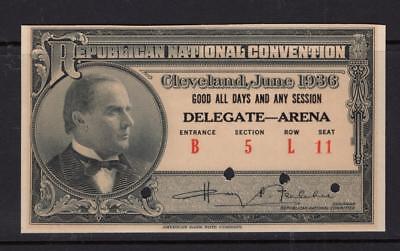 Republican National Convention 1936 Ticket - Specimen on Card - No Reserve!