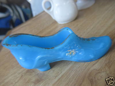 Antique BLUE MILK GLASS SHOE toothpick jewelry snuff