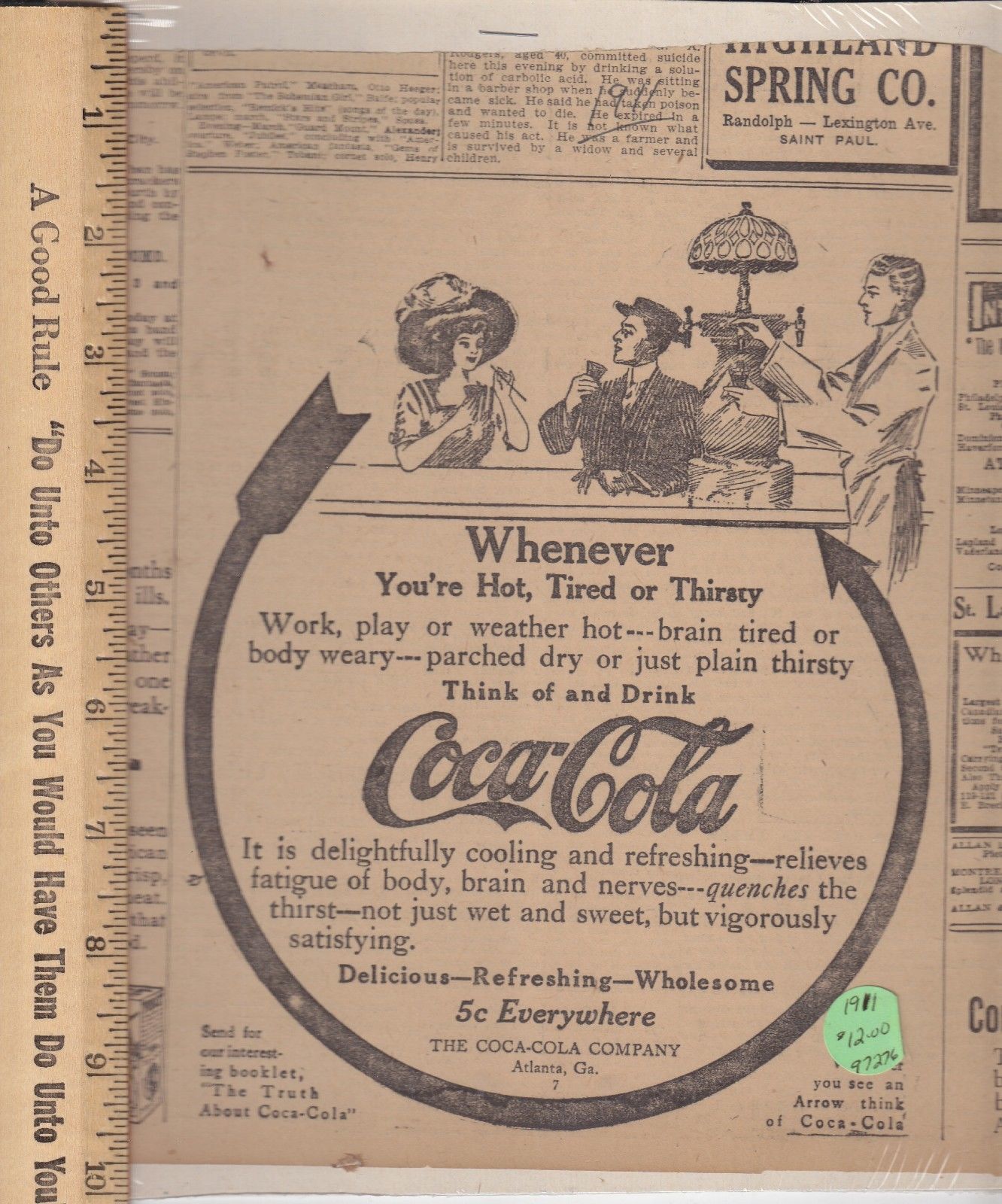 Title (ebay affiliate link): COCA-COLA NEWSPAPER AD 1911 CIRCLE ARROW. SHOWS EARLY DISPENSER