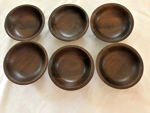 6 - Vintage Wooden 6 inch Round Salad Serving / Candy Dishes