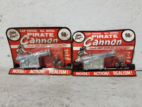 Title (ebay affiliate link): Lot of (2) Vintage Jolly Roger Cap Firing All Metal Pirate Cannons NIP
