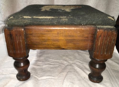 Title (ebay affiliate link): Vintage Antique Wood Foot Stool Ottoman Needlepoint Dog 10 inch