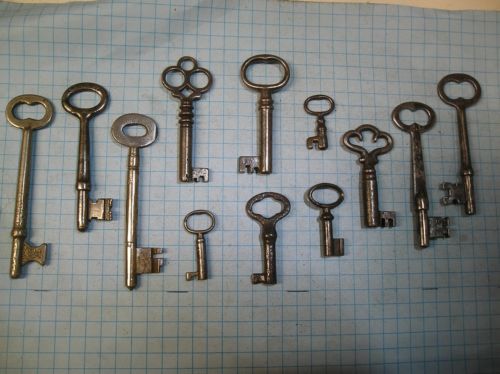 Title (ebay affiliate link): LOT OF 12 ANTIQUE SKELETON, FURNITURE, BARREL, CABINET AND OLD LOCK KEYS