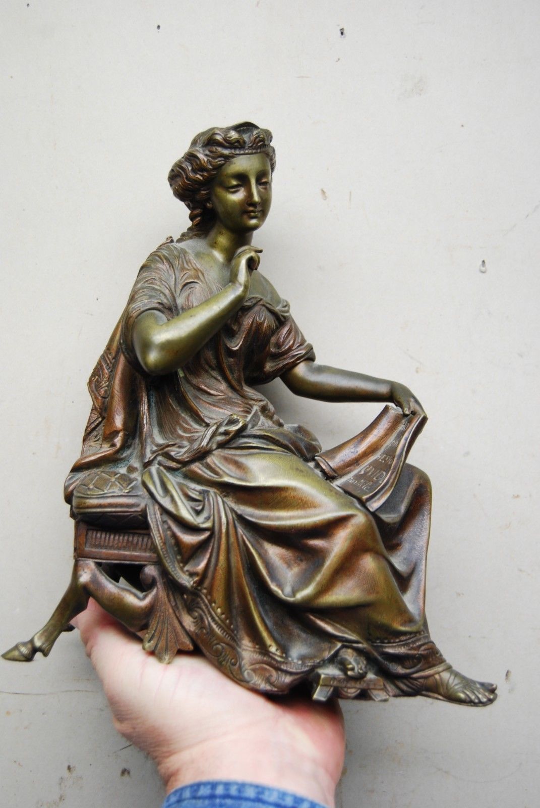 Title (ebay affiliate link): Antique Ornate Bronze Statue Greek Goddess Lady Figurine Reading Scroll