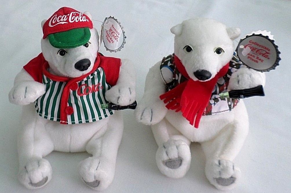Title (ebay affiliate link): ( 2 ) Coca Cola, Christmas Plush Bean Bag Polar Bears