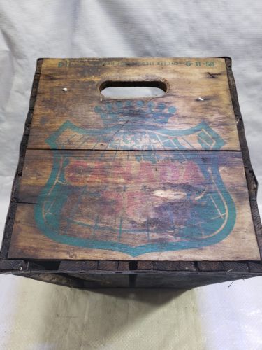 Title (ebay affiliate link): VINTAGE WOODEN CANADA DRY BEVERAGES SODA CRATE POP WOOD CARRIER 1958