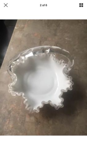 Title (ebay affiliate link): gd Fenton Milk Glass Silver Crest Trim Basket Style Candy Dish Bamboo