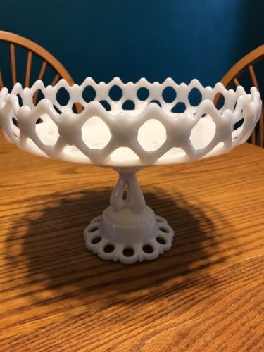 White Milk Glass Pedestal Cake Stand With Lace Design