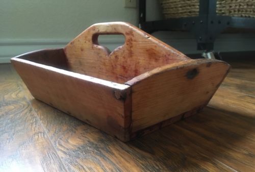 Title (ebay affiliate link): Antique Handmade American Silverware Caddy Red Paint Patina Baltimore Chocolate