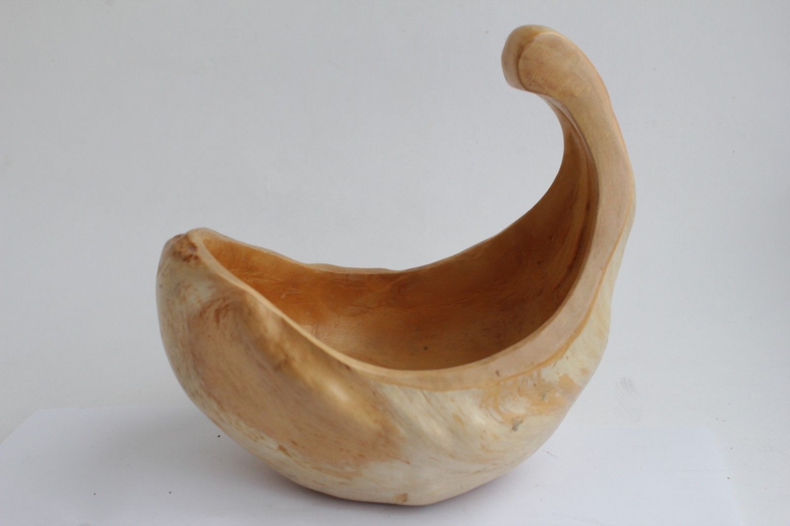 Vintage Swedish Birch Burl wooden bowl ladle hand carved