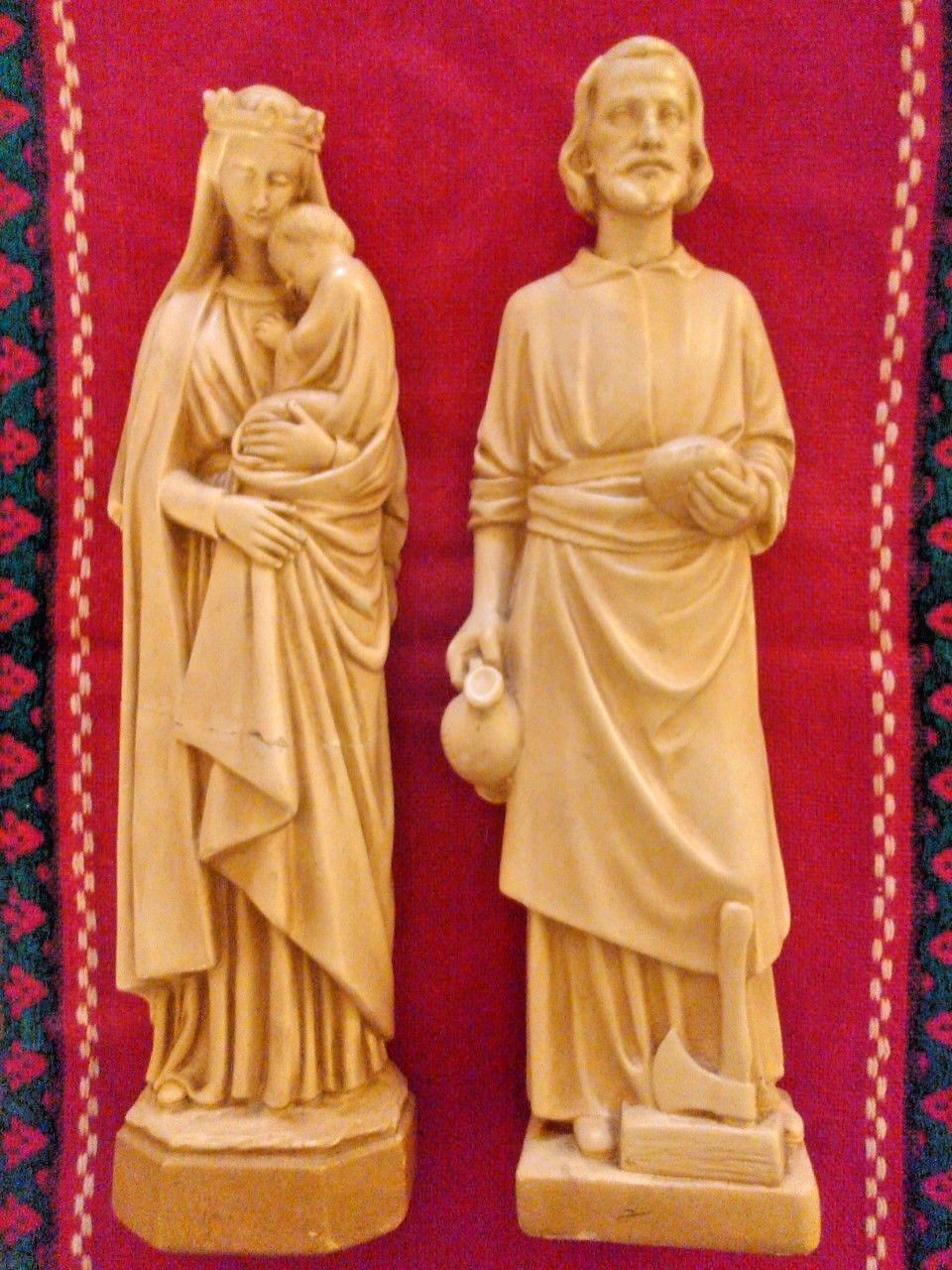 Title (ebay affiliate link): Antique Mary Queen of Heaven w/Jesus, and Joseph Statues -TM O''Connell Studios.