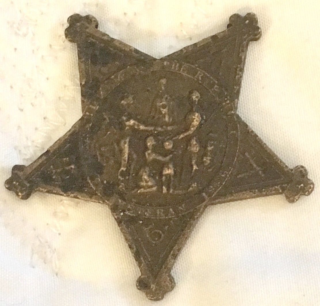 vintage 1866 Civil War Veteran Bronze Star Medal Grand Army Republic carved