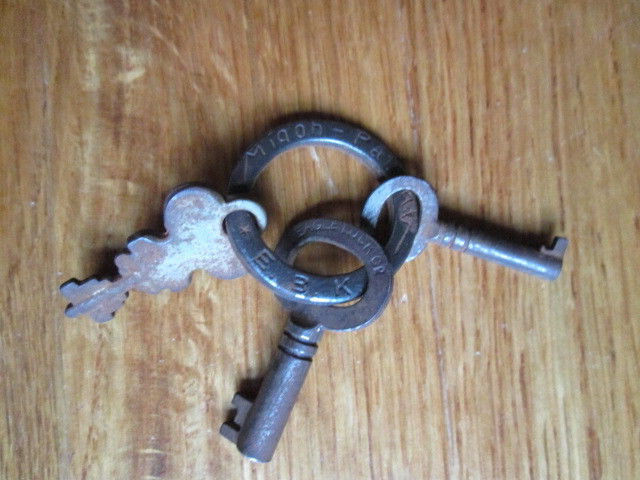 Title (ebay affiliate link): 3 Antique Keys - 2 Steamer Trunk Keys (1 Eagle Lock Co. # 31) & 1 Flat Key