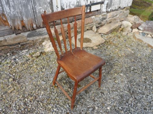 Title (ebay affiliate link): Antique Mid 19th C. Maple Wood PA Arrowback Windsor Signed Plank Bottom Chair