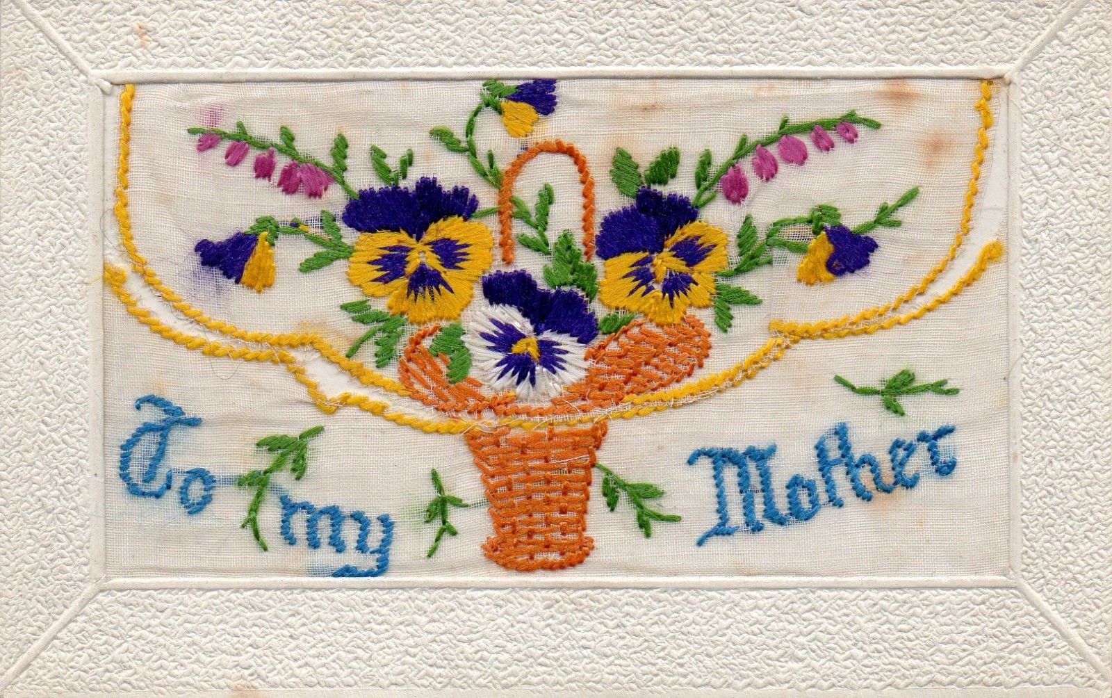 TO MY MOTHER: WW1 EMBROIDERED SILK POSTCARD