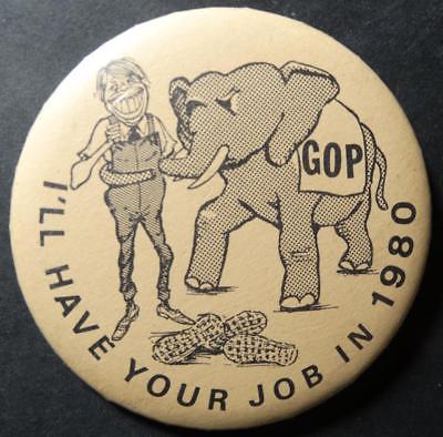 Political Button Pin I''ll Have Your Job 1980 Jimmy Carter Elephant Peanuts GOP