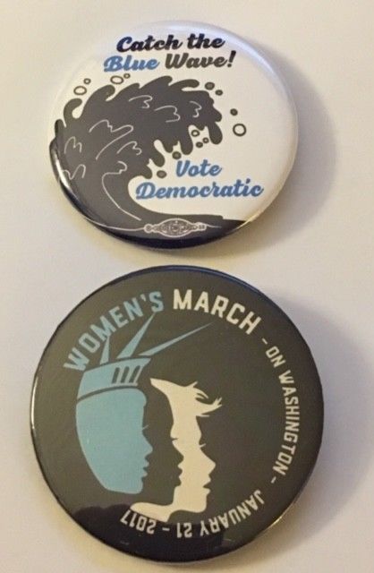 Title (ebay affiliate link): Two 2 1/4" Catch the Blue Wave Democratic and Women''s March 2017 Cause Pins