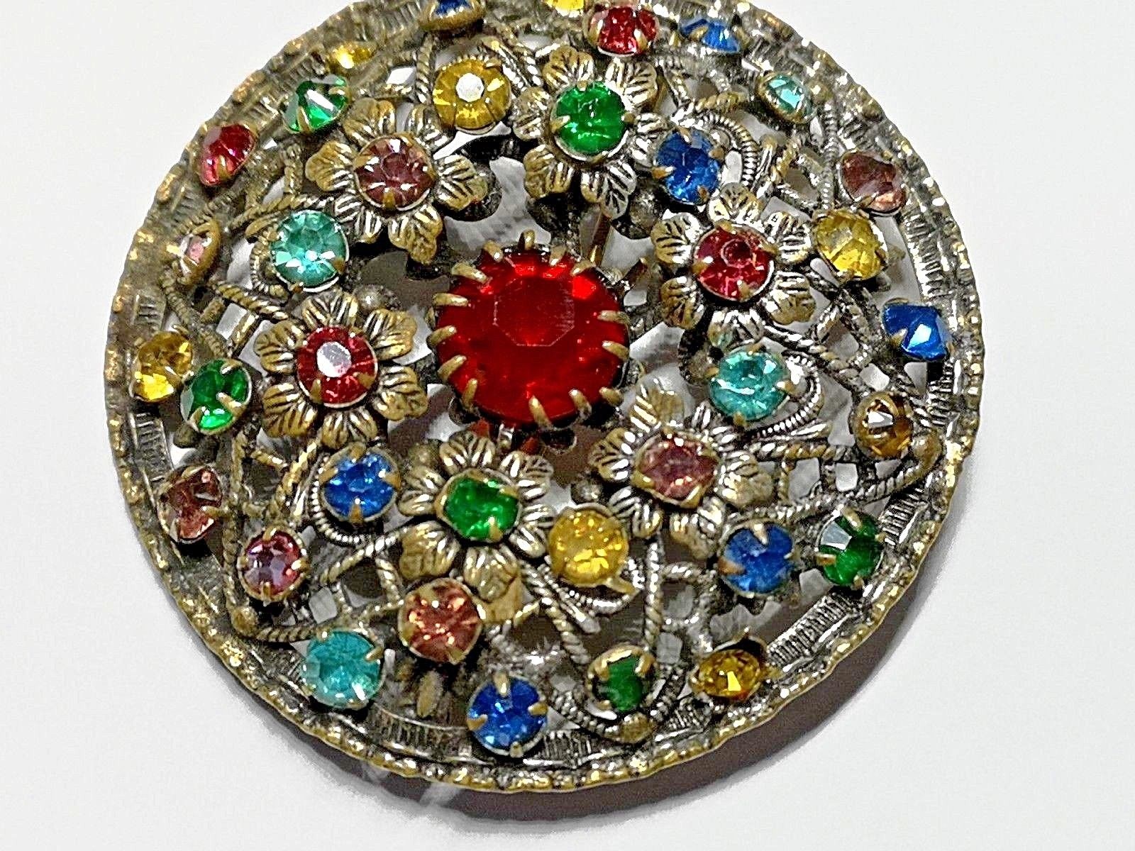 Title (ebay affiliate link): Antique Jewellery Czech Bohemian brass filigree & multi glass stones brooch