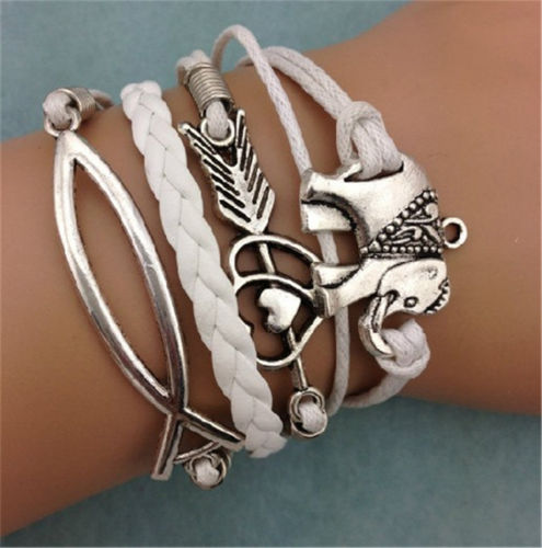 Title (ebay affiliate link): NEW Infinity elephant stone mandrel Heart Antique Silver Leather Charm Bracelet