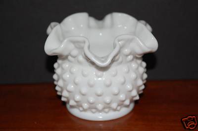 Vintage Fenton Art Glass Milk Hobnail 3" Vase