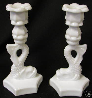 Westmoreland Milk Glass Tall Dolphin Candleholders