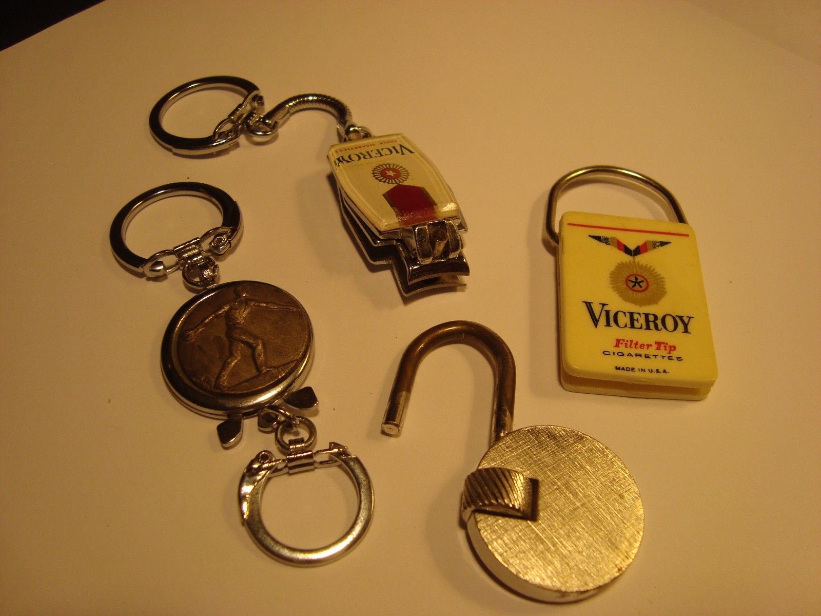Title (ebay affiliate link): Lot of 4 Vintage Key Rings & Keychains=Mini Padlock,Bowler & Viceroy Cigarettes