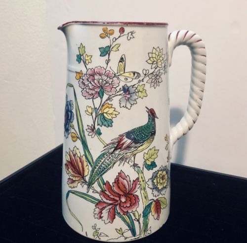 Title (ebay affiliate link): Antique Pitcher Hand Painted Enamel Over Copper multi colored beauty