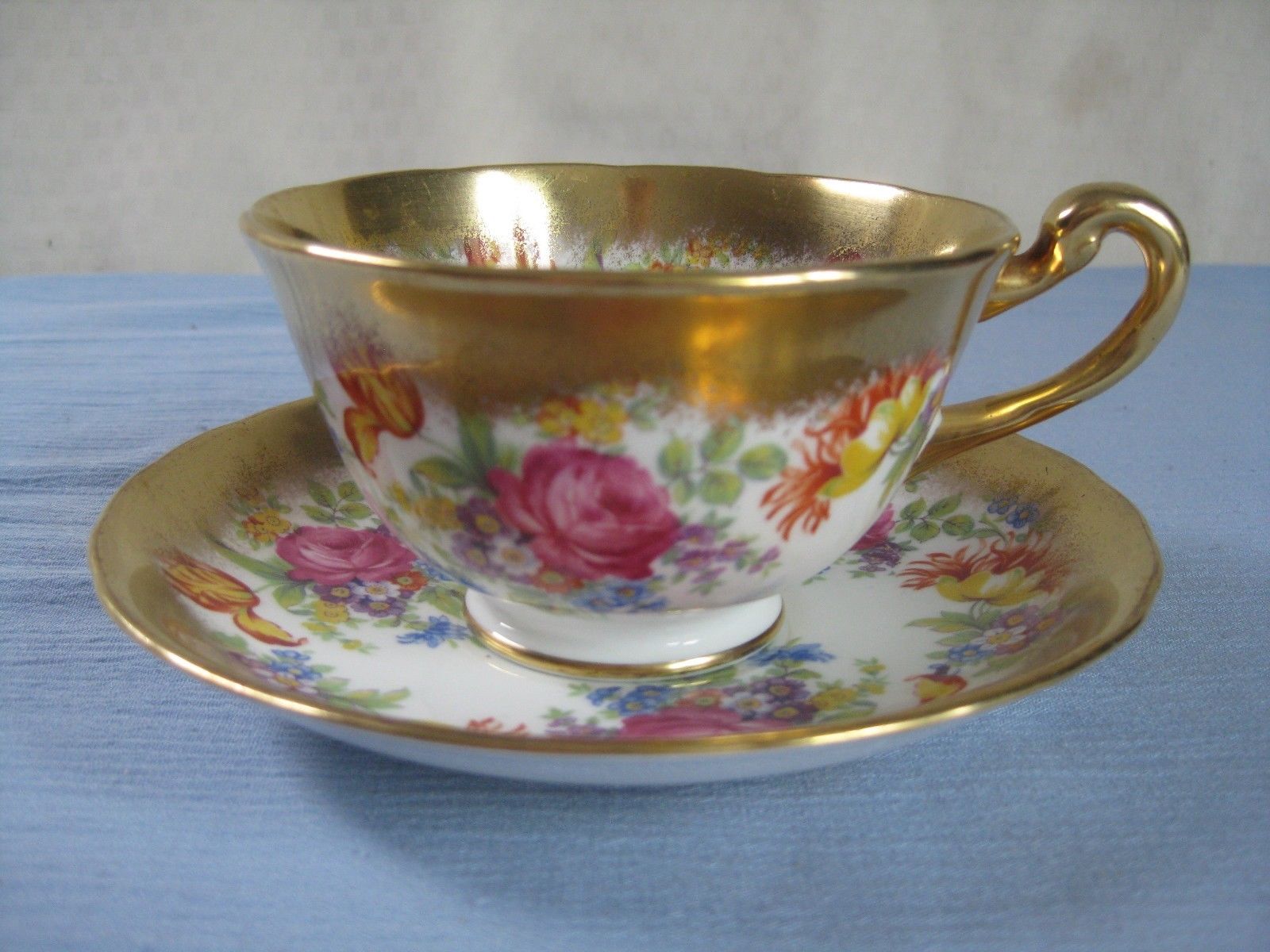 Royal Chelsea Teacup & Saucer - Lots Of Gold - Beautiful