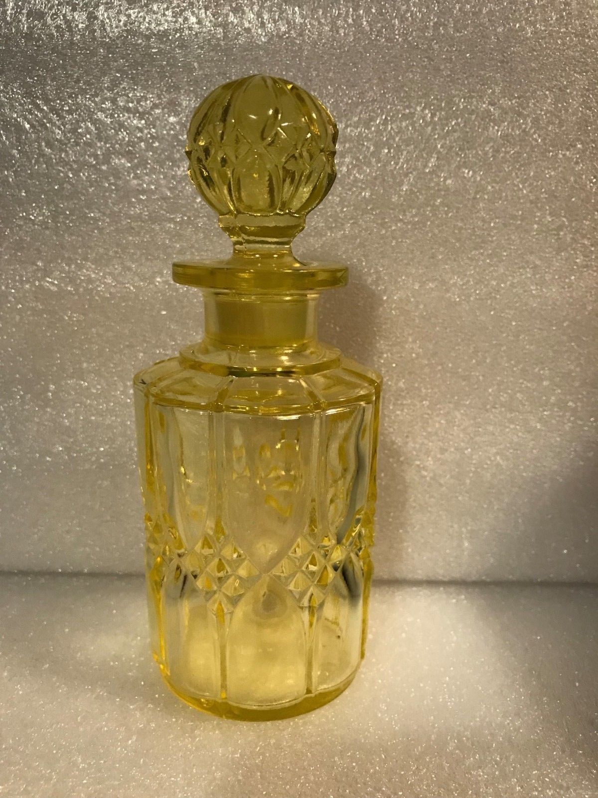 Title (ebay affiliate link): 1930 Val St. Lambert Vaseline yello Glass Perfume Bottle Garniture de Toilette
