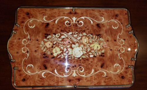Title (ebay affiliate link): ITALIAN INLAY WOOD BRASS DRESSER VANITY TRAY w/FLORAL MARQUETRY DESIGN