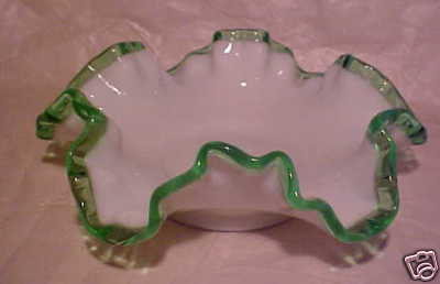 OLD FENTON EMERALD GREEN CREST MILK GLASS CANDY BOWL
