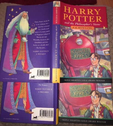 Title (ebay affiliate link): Harry Potter and the Philosophers Stone 1st Edition Hardback BLOOMSBURY DUST JKT