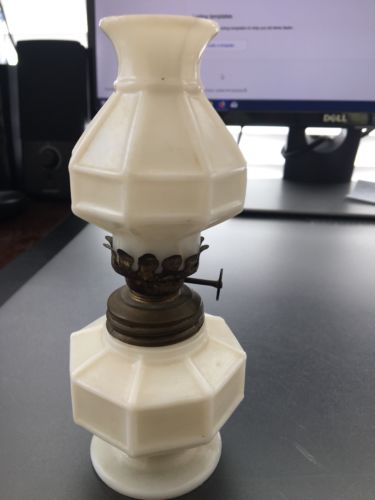 Vintage Miniature Oil Lamp White Milk Glass 6 1/2"